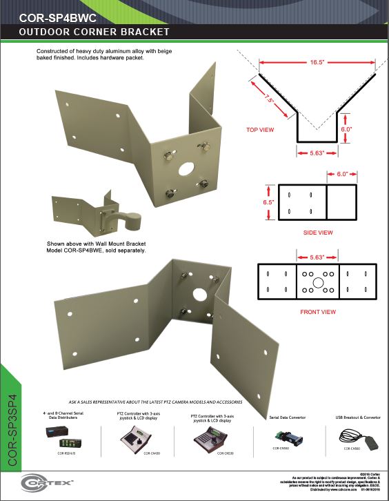Made of high quality aluminum with a baked-on beige finish, this corner bracket is big enough to hold large cameras and heavy products.